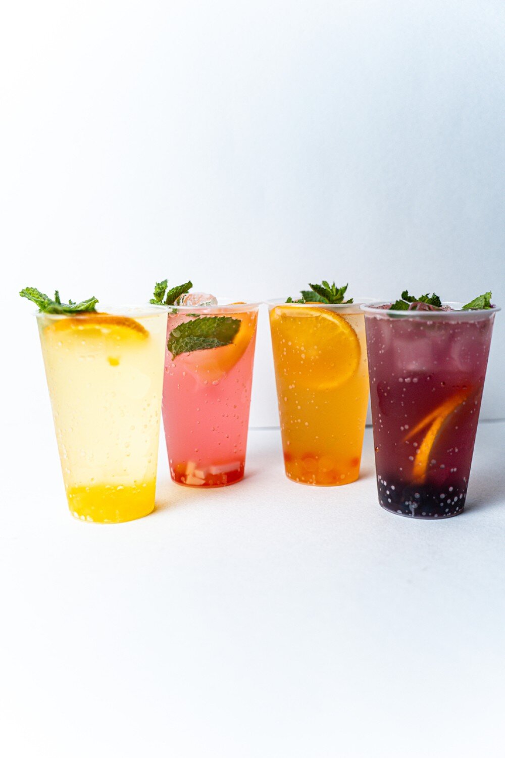 Сироп персиковый, малиновый, газированная вода, лед, джусс болл