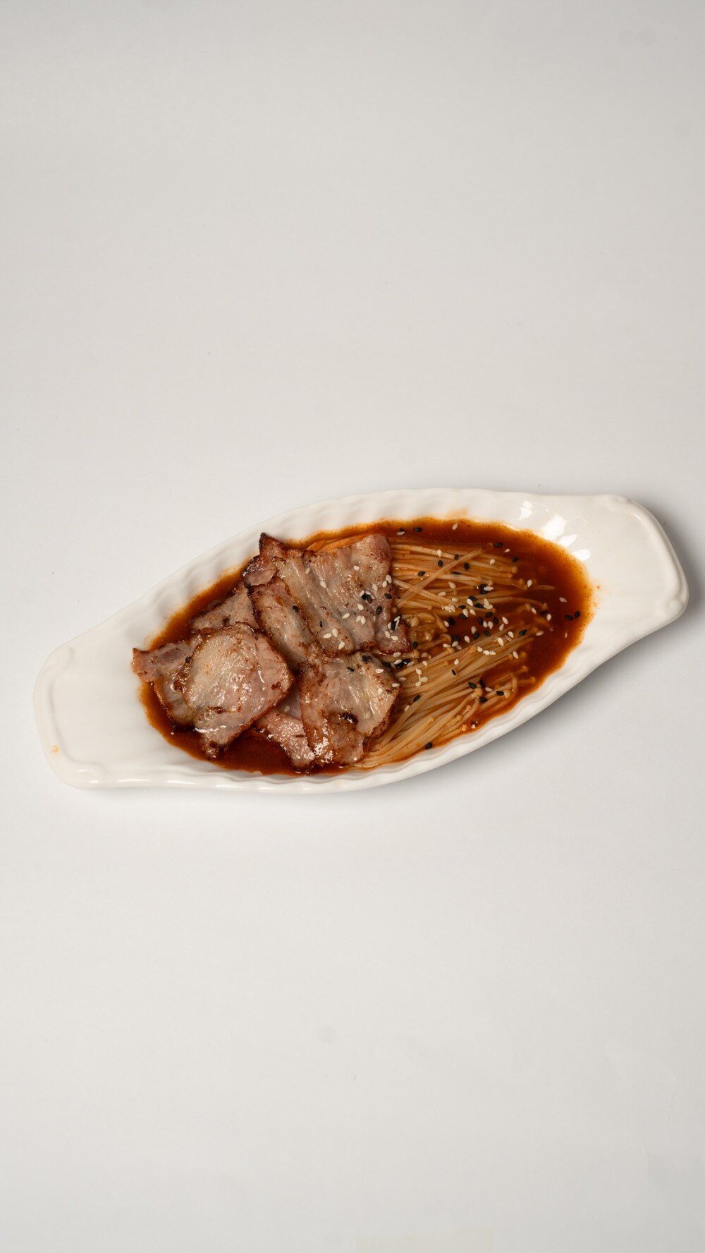 Эноки с беконом в остром соусе