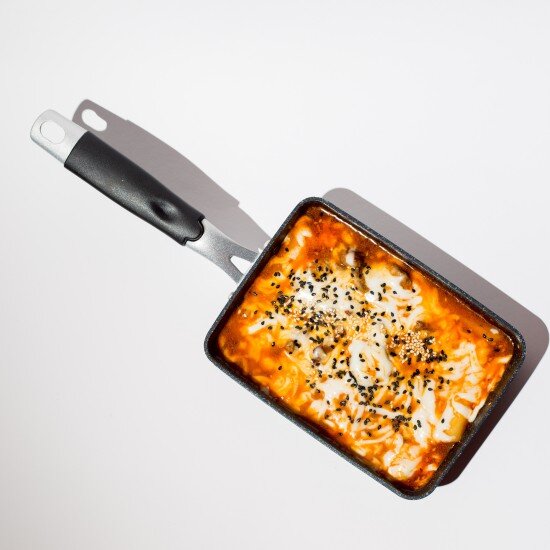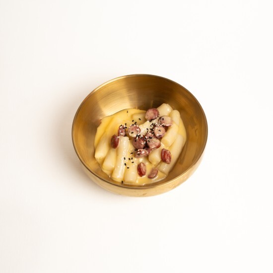 Лапша удон, куриное филе, лук, грибы шампиньоны, сливки. Неострый