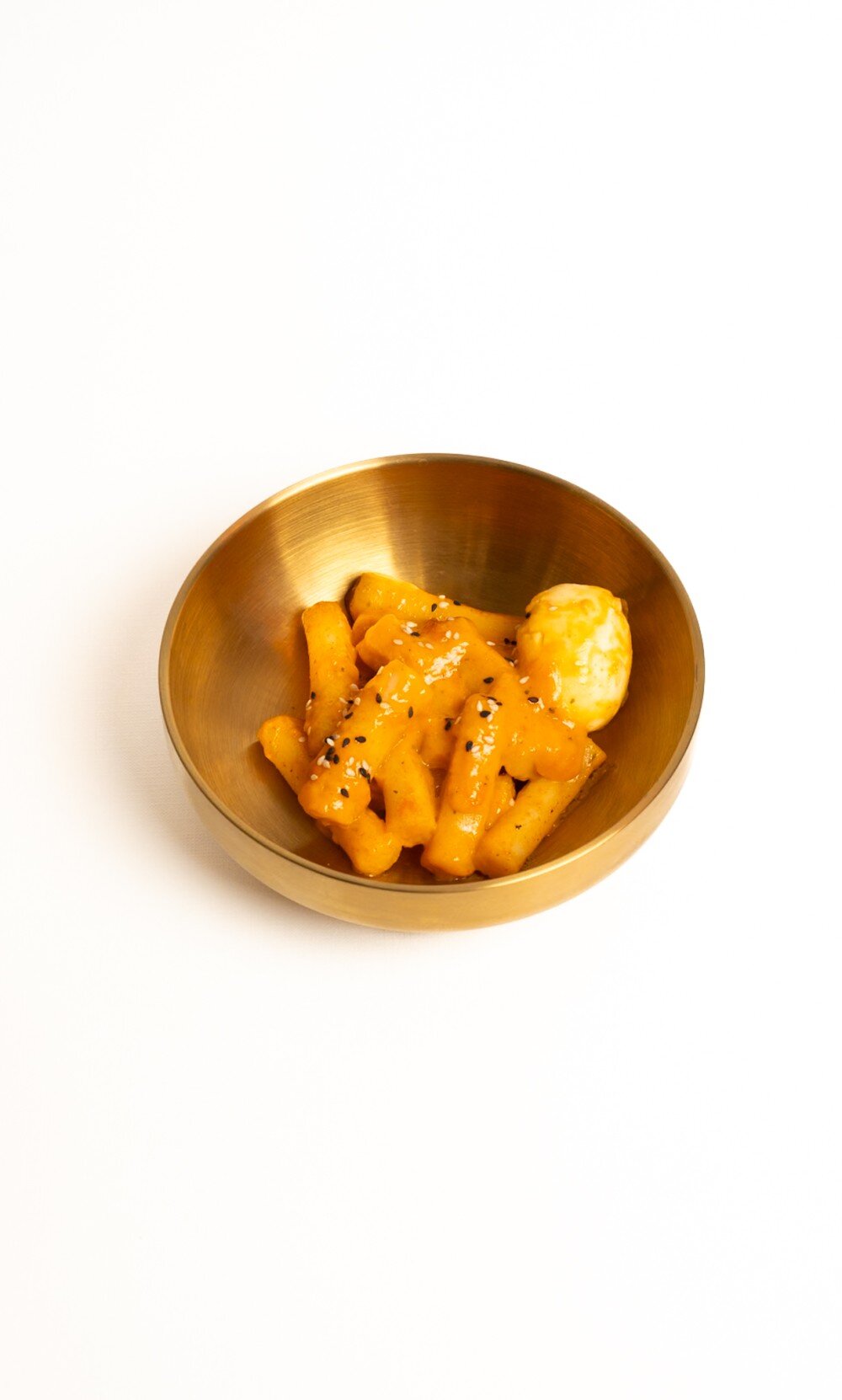 Токпокки (рисовые клецки), яйцо, остро-сладкий соус.
