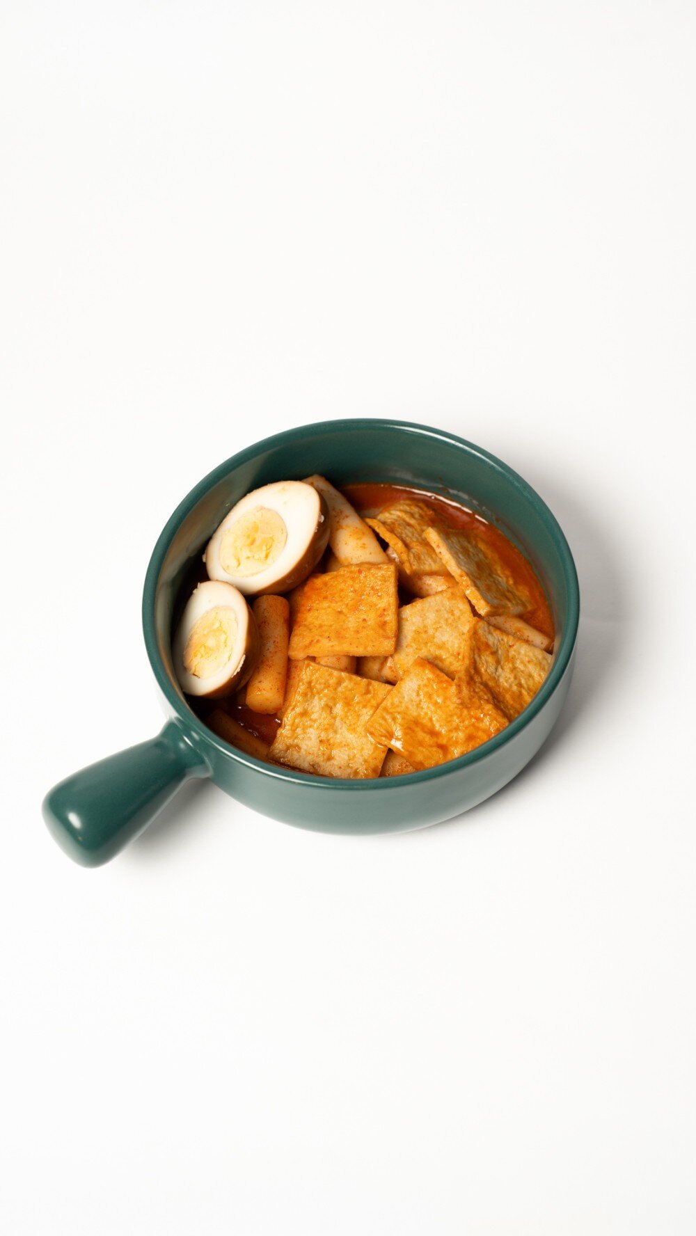 Токпокки (рисовые клецки), острый соус, рыбный блин омук , яйцо.